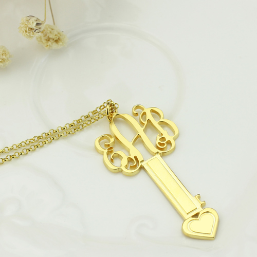 This antique key monogram necklace is a must-have to add a unique and bold piece to your jewelry collection. The design is sure to make you stand out and make heads turn your way. Own a piece with the three initials of your choice. It is classy and will add variety to your wardrobe.