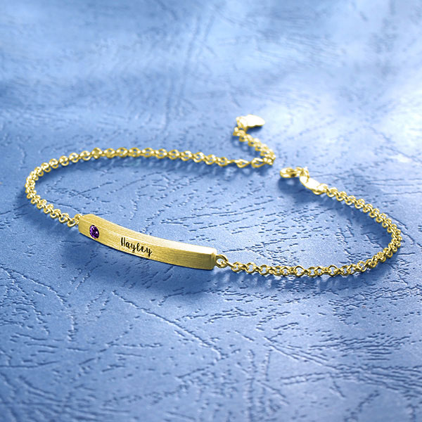 Full of intrigue and beauty, this bracelet is accentuated by the 4-sided, vertically dangling charm. Its simplicity exudes elegance as it proudly displays your name.Personalize this layered bar bracelet with your name, date or initials and it will be engraved just for you. Choose between Sterling Silver, gold plated or rose gold,which will showcase your exquisite taste in jewelry.