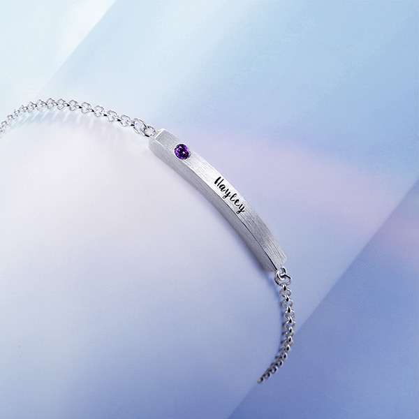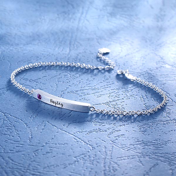 4 Sided Personalised Birthstone Bar Name Bracelet Sterling Silver