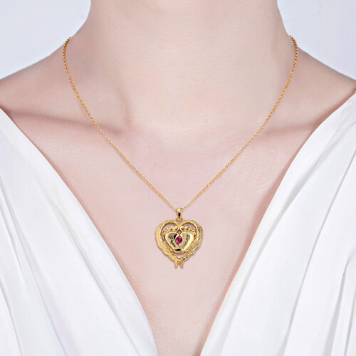 This Birthstone Baby Feet Necklace with Angel Wings to make it meaningful and stylish!Angel wing stand for guard.Baby feet mean Children or your loved ones.Combine baby feet with angel wing express you feeling want to guard your Children or loved ones. This super personalized necklace is a perfect necklace to wear everyday!