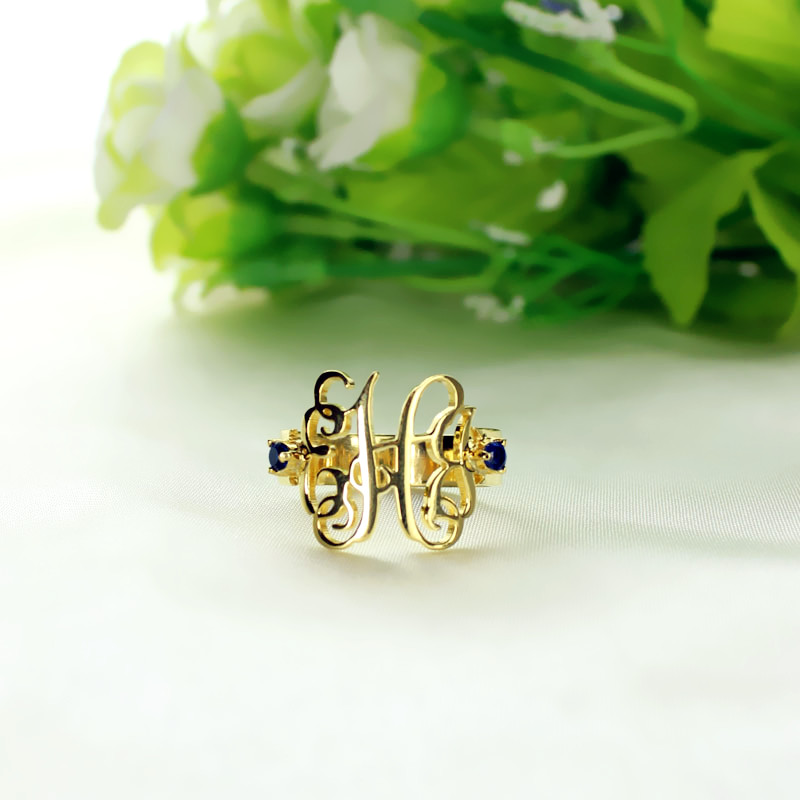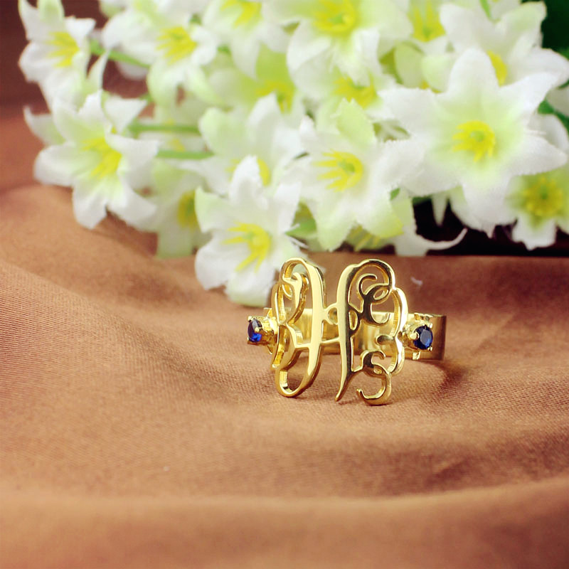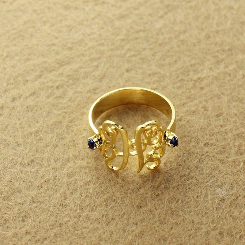 Birthstone Women's Monogram Ring 18k Gold Plated