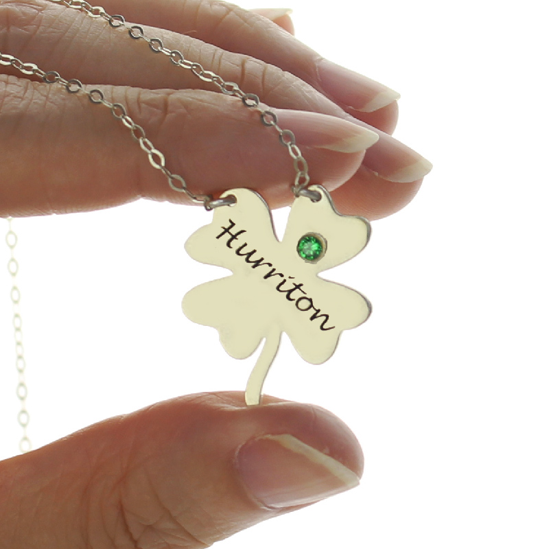 Clover Good Luck Charms Shamrocks Necklace Sterling Silver - Lucky four leaf leaf clover necklace will bring the luck of Irish with  you! Sterling Silver engraved four leaf clover good luck stone name necklace is best choice of Christmas gifts to your family or friends. A best friend is like a four leaf clover: hard to find and lucky to have. So you can't miss out this clover necklace.