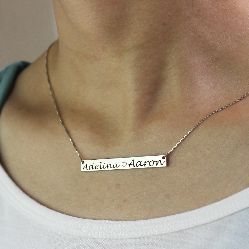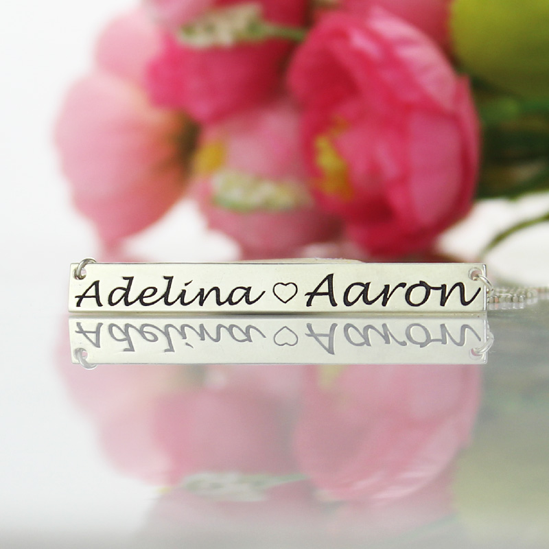 Couple Bar Necklace Engraved Names Sterling Silver