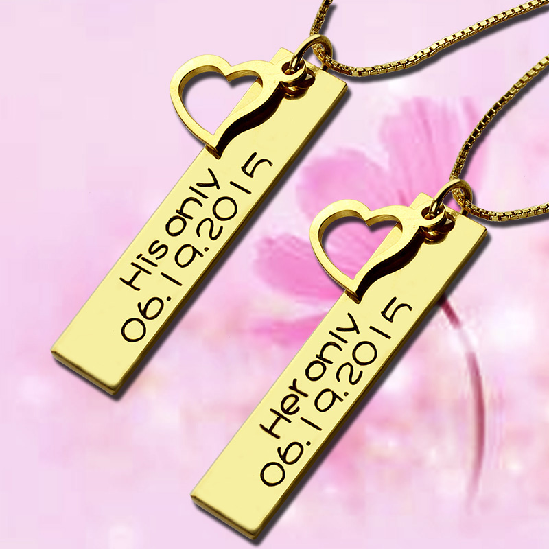 Couples Bar Necklace Engraved Name & Date 18K Gold Plated - Name bar necklace are one of the hottest jewelry trends this year! Show off your name on our exciting sterling silver Bar Necklace with Engraved Initials! Celebrate your name and family when you display your initials in this unique piece of fashionable bar jewelry. Our couple's necklace is a perfect expression of your special bond. Our new personalized couples vertical bar necklace will make you part of the trend and make your love to be forever.