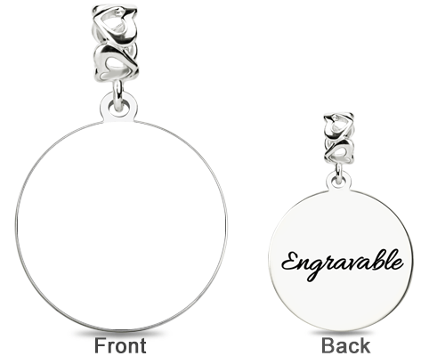 Are you looking for an extra special gift to give to a loved one in your life? Or are you interested in adding a unique and personalized charm to your jewelry collection? Then you have got to check out our Engravable Sterling Silver Circle Photo Charm. This is an ultra-shiny, high polished circle bead that can be strung up on a thin necklace, or a charm bracelet. The front is a plain silver bead design, while the back can be engraved. Add a short and sweet message. The possibilities are endless.The engravable silver charms are of high quality and will stand the test of time.