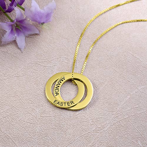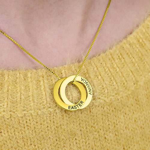Engraved jewelry makes the perfect, personalized gift for any holiday or special occasion, and the ideal addition to your own collection! This stunning engraved Russian ring necklace showcases the names of those who are closest to you, or if you like, you can opt for meaningful words instead. A true classic that’s perfect for pairing with a variety of fashions, it makes a meaningful signature piece for yourself or someone special. Also available in a Gold Plating and Rose Gold Plating version.