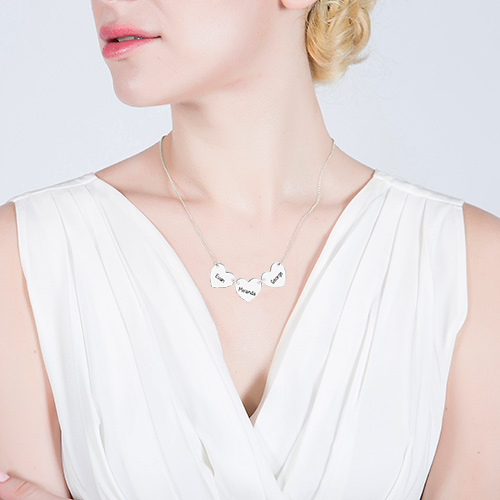 Custom Engraved 3 Hearts & Names Necklace Sterling Silver