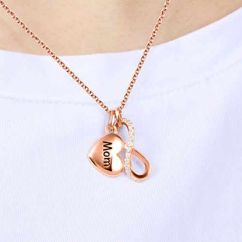 Celebrate the special person who has your heart with this elegant personalized Heart infinity pendant necklace.This design put an classic infinity symbol pendant and heart pendant together. Our special necklace is a passionate way to express the boundlessness of love, You can choice engraving any words, date on the heart pendant up to 8 character. Expertly handcrafted in 925 sterling silver.On the infinity pendent decorated a row shining Cubic Zirconia, when you wear it looks glittering and make it more eye-catching. This pendant is the perfect gift for a woman who means everything to you. She will never forget how loved she is when she's wearing this gorgeous symbol of eternal love. The necklace also a great surprise for your mother. show your love for her is endless. Express in your heart nothing can replace your mother's love.