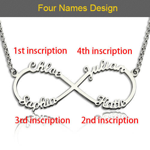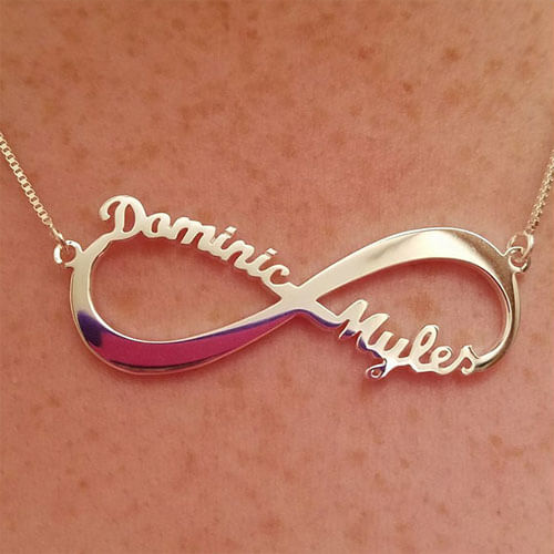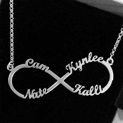 Personalized Infinity Symbol Name Necklace - the best way for you to show off what "forever" means to you. Add up to four names or words you cherish on each loop of the infinity symbol. This minimalistic and delicate necklace is the perfect addition to any outfit, day or night, business or casual, and would make a lovely gift for yourself or someone you love for any special occasion.