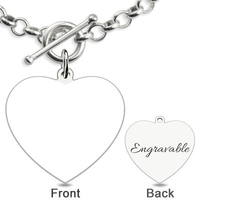 Custom Heart Charm Photo Engraved Bracelet in Sterling Silver