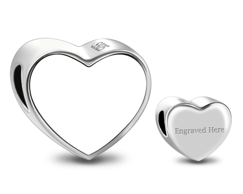 This photo charm in a heart shape that allows you to add your favourite picture of the one you love.The back can be engraved. Add a short and sweet message or have it monogrammed.Perfect for a Charm or as a pendant! Get ready to fall head over heels in love with one of our personalized getnamenecklace photo charm. The Personalize Your Charm bead is a double-sided design that will look fantastic. no matter which side it is flipped to. The front can hold an image of whatever you please. Add in everything from pictures of children. a significant other. a parent. a pet. or even a Best Friend Forever in your life. This sterling silver bead has a heart shape and two flat sides. It makes for a lovely gift giving option for you and your loved ones.