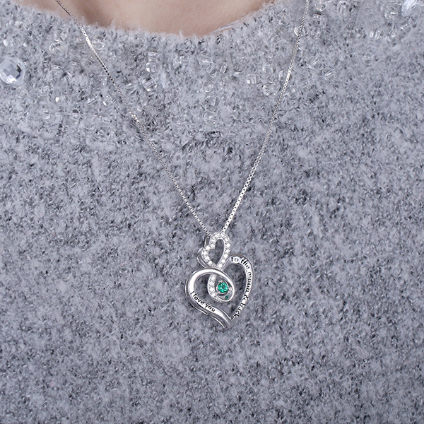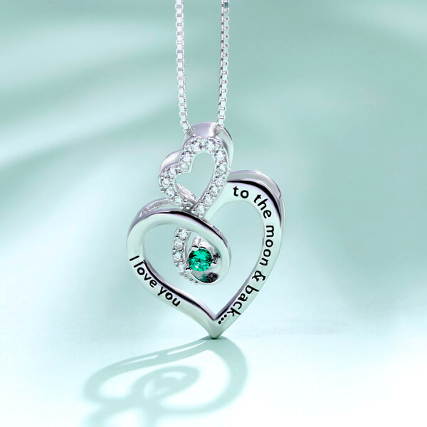 The Infinity Custom I love you to the moon and back Birthstone Necklace makes a beautiful gift for that special someone. Infinity Birthstone Pendant is a beautiful symbol of love that never ends.This stunning necklace comes on a sparkling birthstone, The front of the heart pendant are the words, "I Love you to the Moon and Back", to show your love with sweet words. making it a perfect gift for a mother, grandmother, or that special someone in your life.