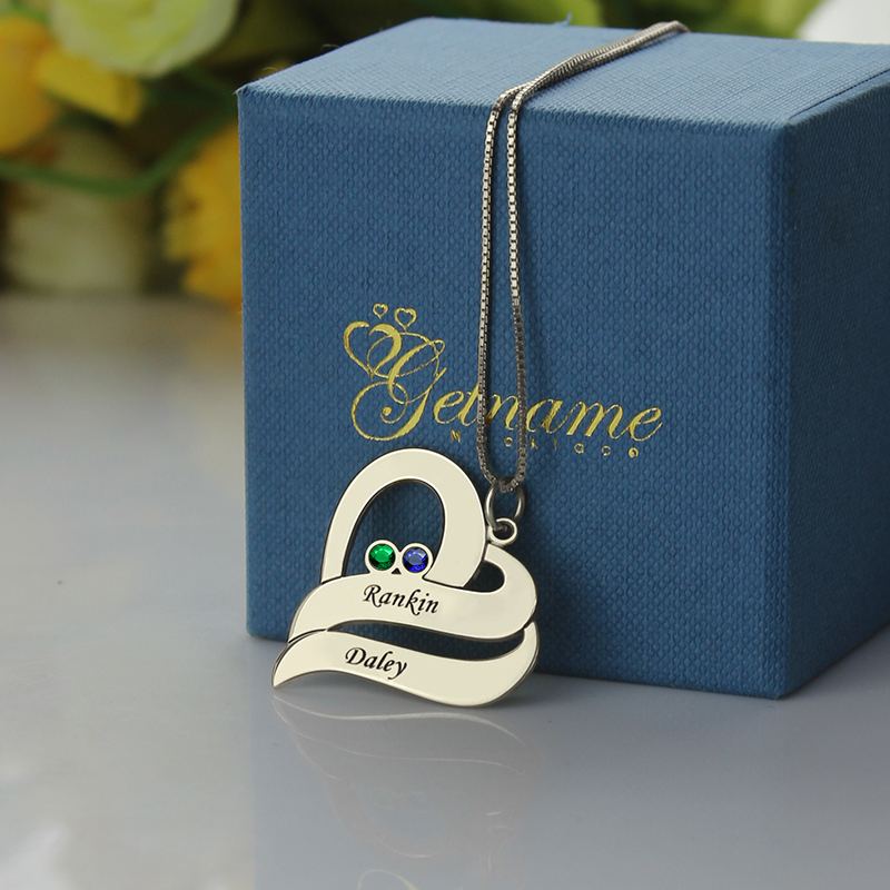 Valentine's Day Gifts Heart Necklace with Name & Birthstone - Beautiful birthstones and a personalized engraving come together to create our heart necklace with Birthstones. Select two birthstones and two engravings to make this necklace special and meaningful. It will be a nice gift for a friend.