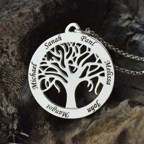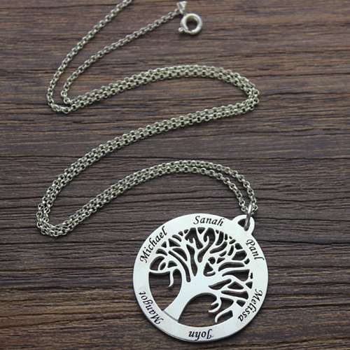 Tree of Life Necklace with Customizable 1-6 Names in Silver