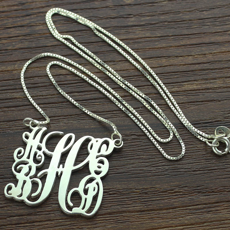 Mothers Day Gifts - Personalized Family Monogram Necklace for Mom - This eye-catching fashion monogram initials necklace spells out your affection for all to see. and then can be finished with initial of your choice, such as Mum, Mom, Nanny, Grandma or Granny. Created in sleek sterling silver, this scrolling monogram-style necklace spells out 5 letters, all tastefully designed to create an alluring appearance. This pendant has one letter located at the center. All around the middle letter are four letters that are strategically located to give a visual balance to the pendant in an ornate and flowing script font.