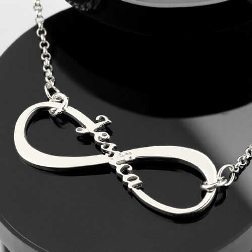 Keep a special loved one close to your heart forever with our Infinity Symbol name necklace Jewelry. Inscribe their name across the pendant to make this piece a special keepsake for life. It is the perfect addition to your infinity jewelry collection.