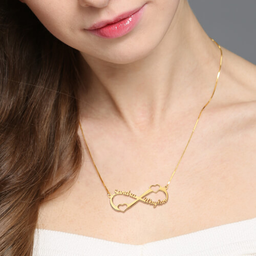 Infinity has always been one of the popular symbols that graced the jewelry industry. This is because this mystique knot is emblematic of eternity, boundlessness, and wholeness.This Double Heart Infinity Names Necklace engraved your name and your loved name on it ,Two heart symbolized your heart get together no matter where you're.