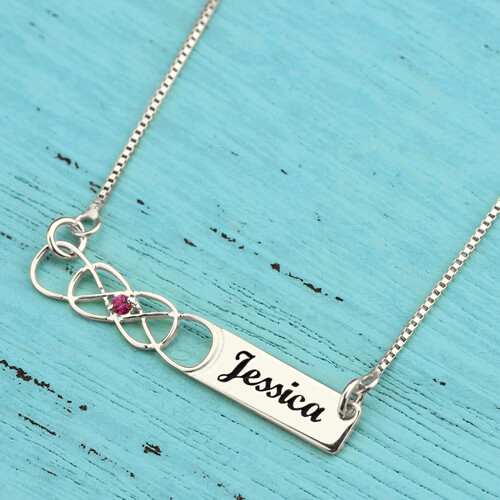 Bar necklace with double infinity necklace is fashion and personal.You can engrave any name or word on the bar.It is the best gift for express your love to each one .
