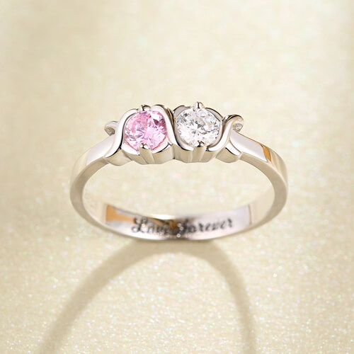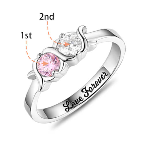 Wear something personalized just for you with our 2 stone x's and o's birthstone ring. Customize 2 cubic zirconia birthstones to represent children, grandchildren, family members, or anyone you loved. Made of 925 sterling silver with special design. This is the perfect custom made jewelry gift for a mother, grandmother, or a wife to represent her loved ones. A customizable birthday rings are unique and thoughtful gifts for friends and loved ones alike. This is the perfect way to show that special lady in your life how special she is to you.