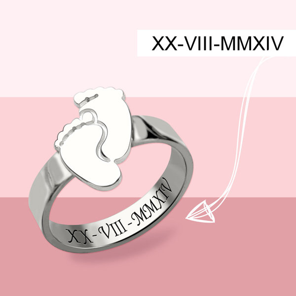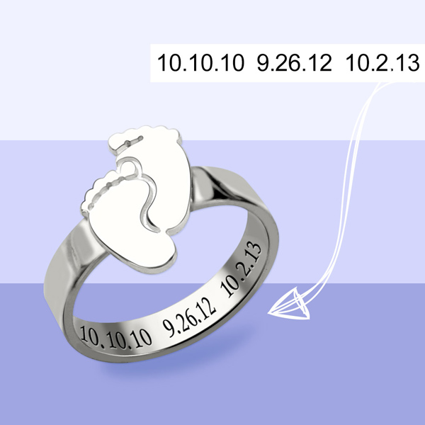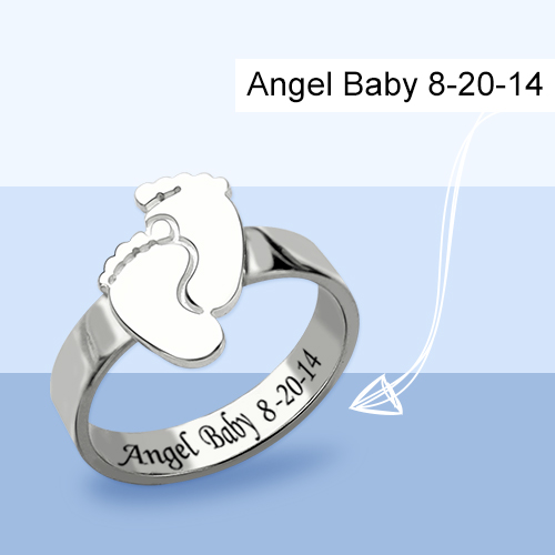 Engraved Baby Feet Ring For Mom Sterling Silver