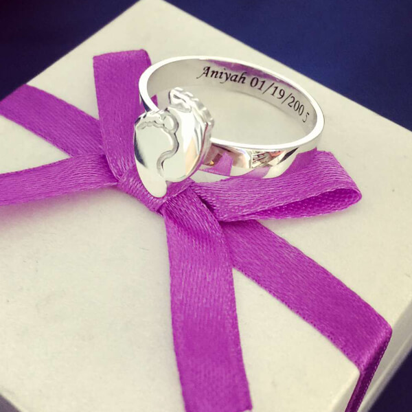 For any new mother, this is the perfect gift to get them. It is also a great Mother's Day gift. Any mom would love to receive this gift. She can look at it fondly and keep her child close. Looking for a gift for mom? This engraved baby feet ring is the perfect option.