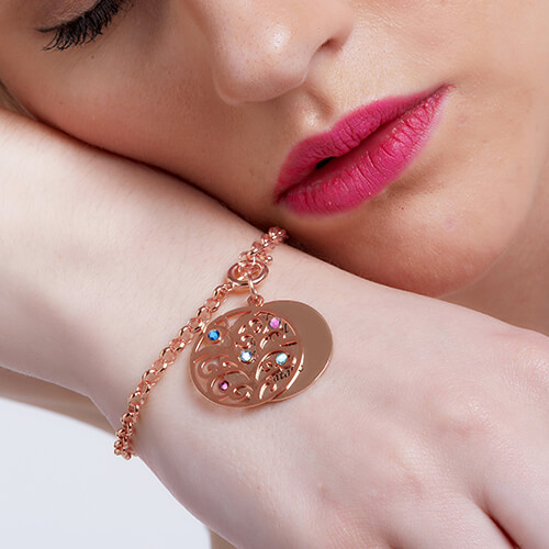 Engraved Family Tree Birthstone Bracelet In Rose Gold