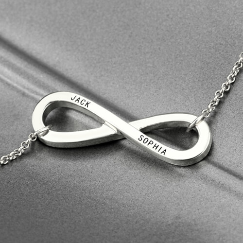 Engraved Infinity Symbol 2 Names Necklace Sterling Silver