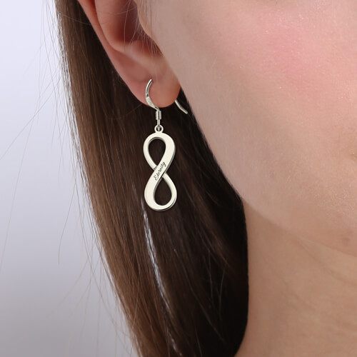 Engraved Infinity Symbol Earrings Sterling Silver
