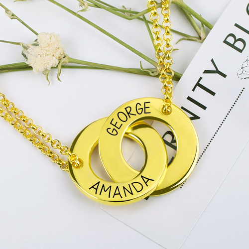 Engraved Interlocking Two-Circle Name Necklace Gold Plated Silver