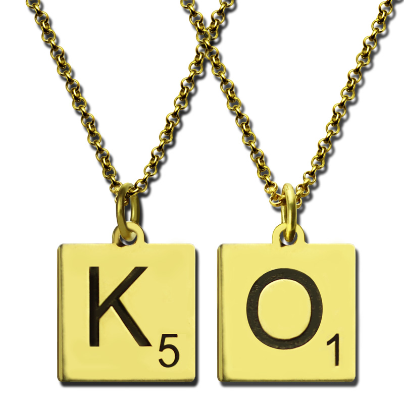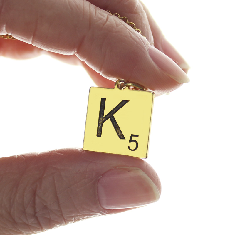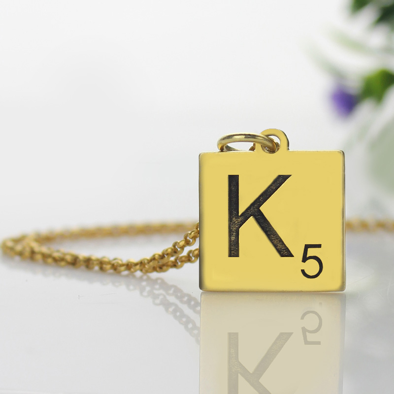 Engraved Scrabble Initial Letter Necklace 18k Gold Plated - How much do you love Scrabble game? Now is your time to personalized a scrabble necklace. Select your favorite letter to wear. Many celebrities love this fun fashion trend, and you can see it featured in many television shows.