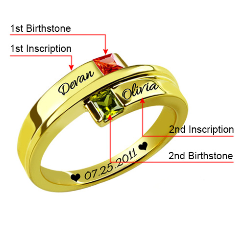 Engraved Square Birthstones Memorial Name Ring Gold Plated