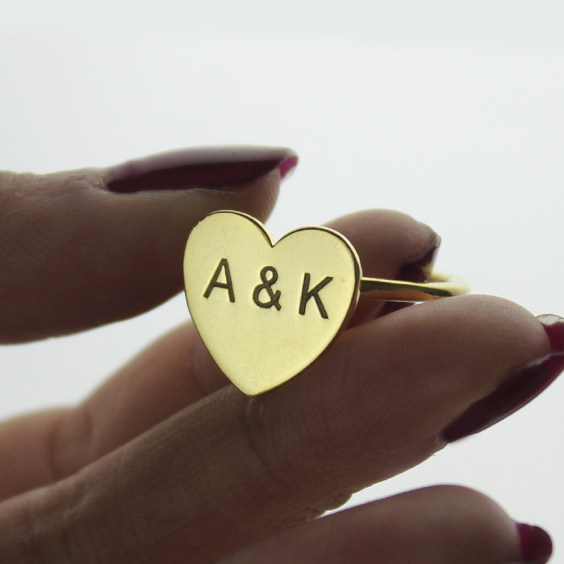 Engraved Sweetheart Ring with Double Initials 18k Gold Plated - Personalized for your own handmade fashion statement, our gold heart initial rings makes a unique gift or cute accessory for everyday wear.
