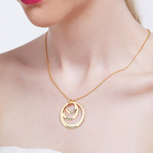 Engraved Three-Disc Name Necklace for Mother 18K Gold Plated
