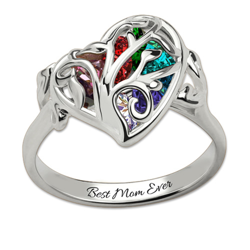 This family tree heart cage ring is the perfect treasure to represent your loved ones. Its simple, choose your desired heart birthstones as they will be loosely placed inside this caged tree. This ring can be personalized with 1 to 8 birthstones. Available in Platinum Plated,Gold Plated and Rose Gold Plated.It is best gift for Mother or your loved one.