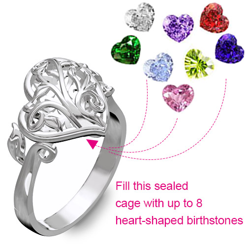 Family Tree Heart Cage Ring With Heart Birthstones Platinum