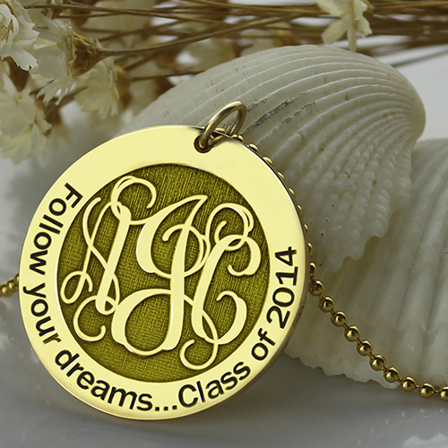 1. A monogram necklace is typically structured with the last name as the large initial in the center, first name initial on the left, and middle name initial on the right.