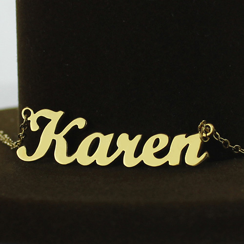 Exclusive, stylish and sophisticated, the classic karen necklace is perfect for every woman with a fine sense of aesthetics. Go high on your fashion quotient with this glossy silver Script Name Necklace. As a blend of simplicity and style, this necklace can be personalized with your name and worn on any occasion. Buy it for yourself or surprise a friend with this appealing gift.