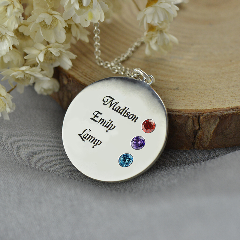 Are you thinking about a perfect gift for your grandparents? Our Grandma's Disc 3 Birthstones & Names Necklace will make the sentimental and perfect present for your grandma. Not only you can engrave the names of your family on this personalized necklace, but you can also select a birthstone for each name. Any mom is sure to appreciate the sentiment and love associated with this Grandma necklace