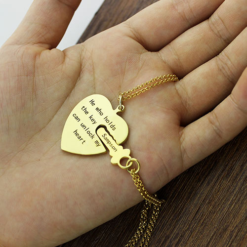 Show the world how much you love each other with this unique couple necklace! This unique necklace features a key and a lock that can interlock with each other to make a heart and one necklace. This means expressing the love for each other and are open to letting other people around to know about your feelings. He who holds the key is your Mr. Right. Place your order now!