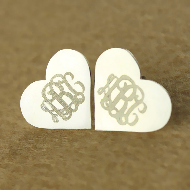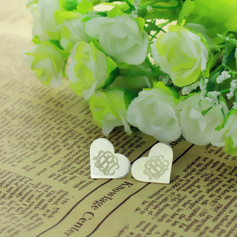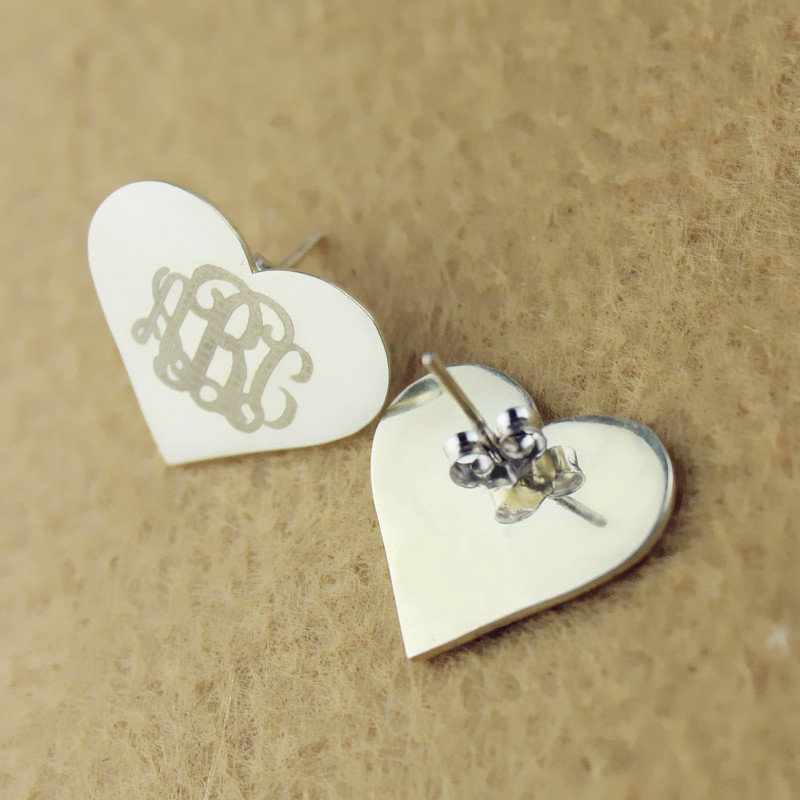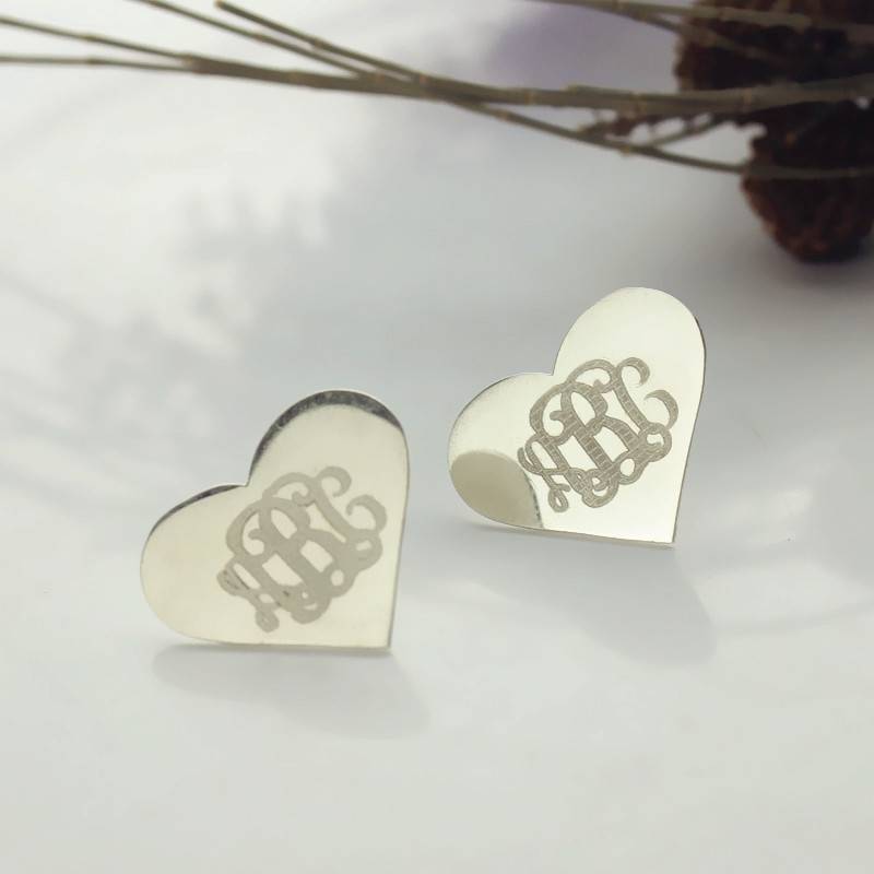 Monogram Earrings earrings studs with heart engraved in your initials. There is no better way to show off a little bit of who you are than with a beautiful pair of Personalized Monogram Initial Earrings in Solid White Gold!