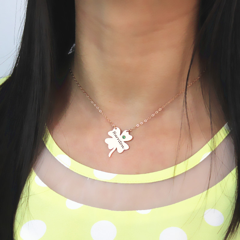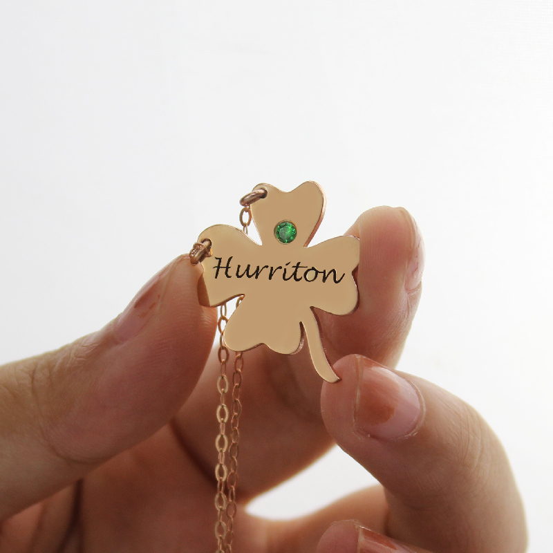 Irish Four Leaf Clover Good Luck Necklace Gifts Rose Gold - Lucky four leaf leaf clover necklace will bring the luck of Irish with you! 18ct Rose Gold plated on Silver engraved four leaf clover name pendant is best choice of Christmas Irish gifts to your family or friends. A best friend is like a four leaf clover: hard to find and lucky to have. So you can't miss out this clover necklace.
