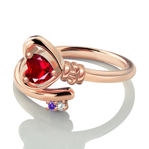 Key to Her Heart Ring with Birthstones In Rose Gold