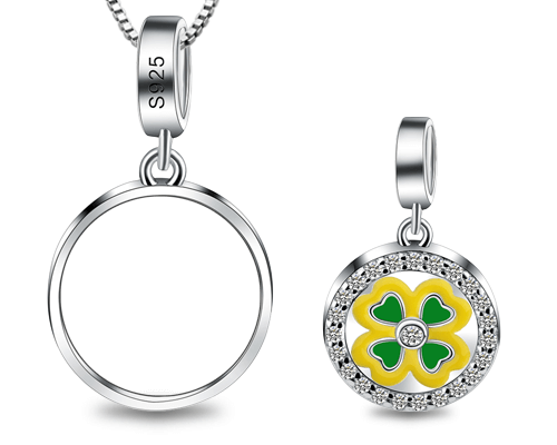 Personalized photo jewelry is a meaningful keepsake to wear now and to share with generations to come.This necklace has the special design - four leaf clover with glittering stones decorated on the pendant back, that will add a great pop of color to your overall appearance.Four-leaf clovers are supposed to bring luck into your life.