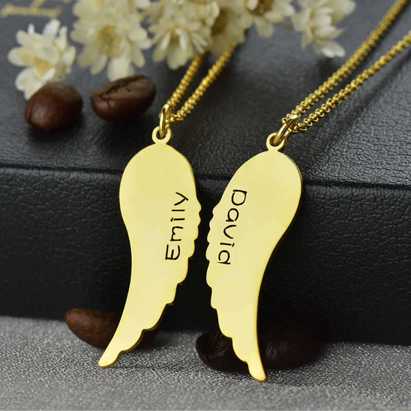 Matching Angel Wings Necklaces Set for Couple 18K Gold plated - The meaning of Personalized Angel Wings Charm Name Necklace is just that, only for you and me. To give you beautiful jewelry you can engrave to create a truly timeless gift.