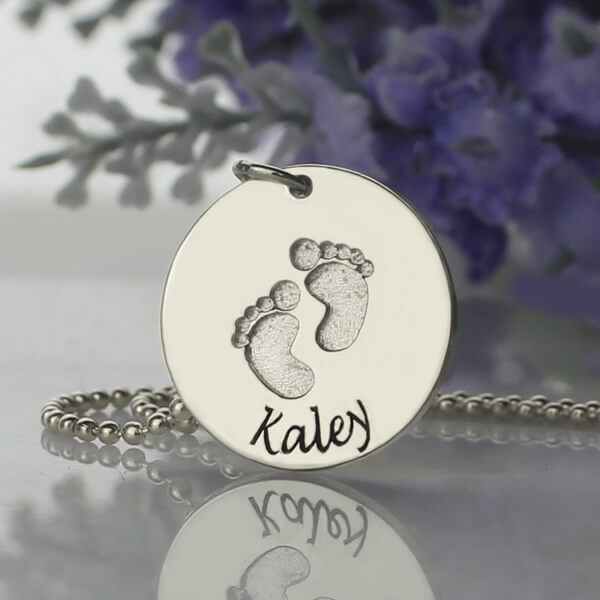 Always Mother of the baby's first steps with this super cute Personalized Necklace, which will keep your loved one near where it belongs your heart!