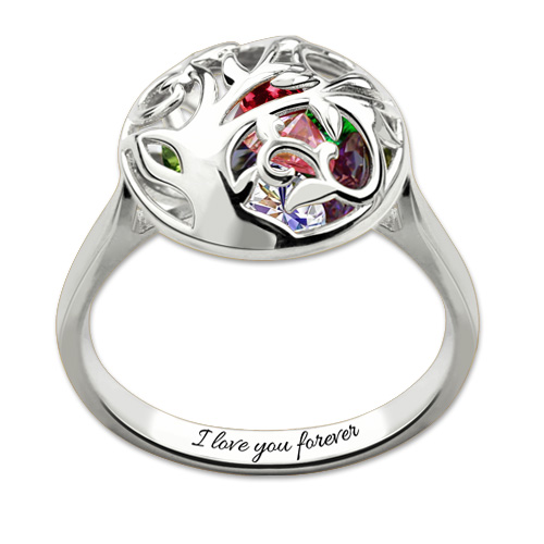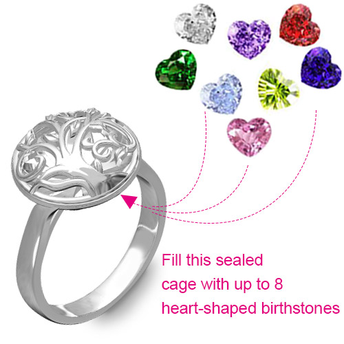 This Round cages with family tree on make this the most exceptionally personalized and one of a kind gift you can give. Choose the cage that most represents the amazing woman, wife or mother who will be wearing it and each birthstone as family members. It means family members get together. The large cage size allows space for up to 8 heart birthstones to make the ring even more special! Any words you want to express and you can engrave inside of the double hearts shaped rings. Get a personalized 14k gold diamond ring to your mother on Mother's Day now!