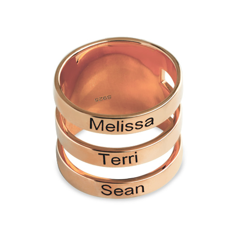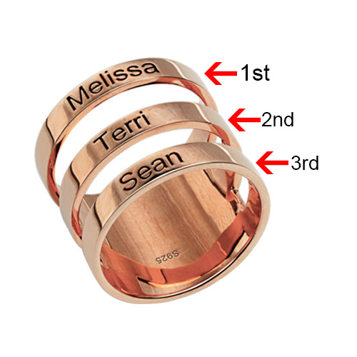 Mother's Engraved Three Names Ring In Rose Gold