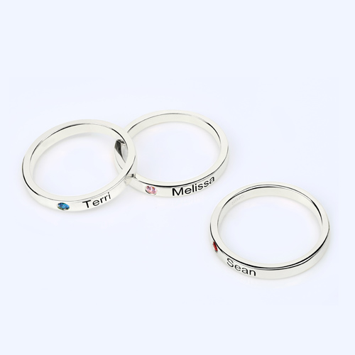 Smart, stylish and meaningful,this personalized Stackable Ring With Names helps Mom celebrate her family in a clever way. Crafted in sterling silver, each row in this glistening style features the birthstone, you can select up to three total. Further customize the design with the three corresponding names or words of your choice - each up to 10 characters in length. This thoughtful statement of style is destined to make a big impression on Mom.