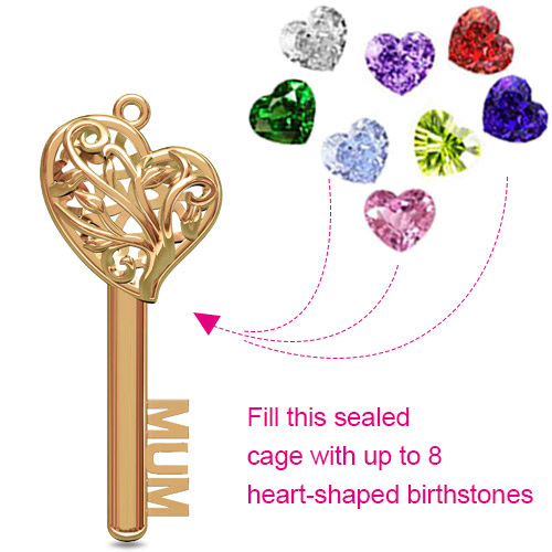 Mum Key Necklace allows 1-8 birthstone into the family tree design of cage, can represent a family get together and families deep love.It is an excellent gift for the mother. The key shape can symbolize open someone's heart and can also be used to give person you like.
