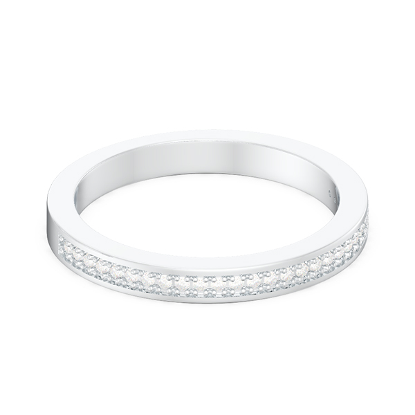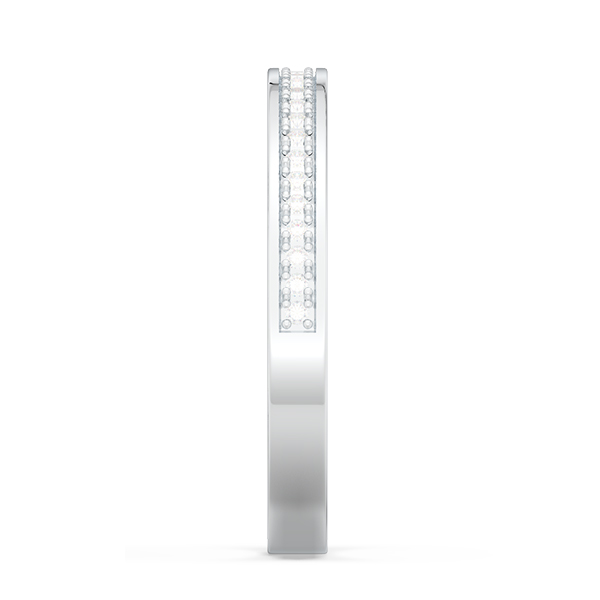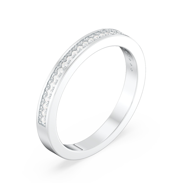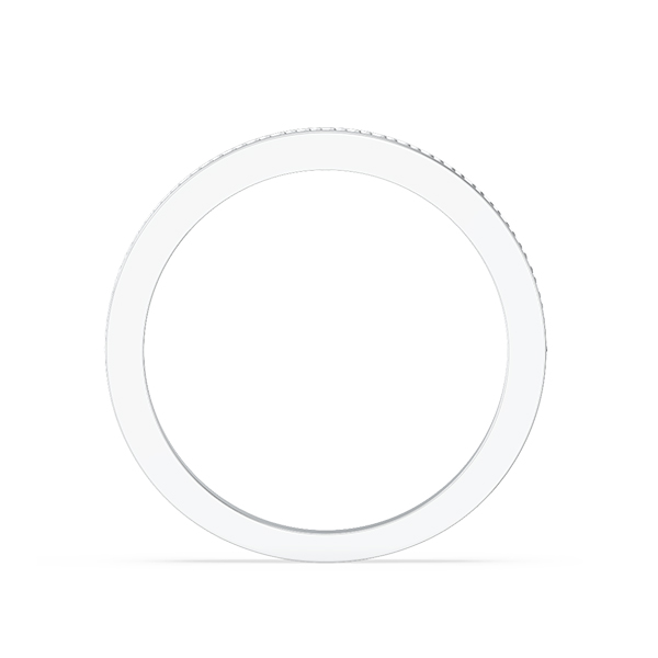 Designed to complement and enhance the sparkle of any engagement ring, this classic ring has diamond accents that are pavé-set halfway around the band. The detailing on the edges adds a touch of sparkle and romance.Personalized with the gemstones and metal of your choice. Pair it with the engagement ring for an exquisite wedding set, sure to enchant her for all time.